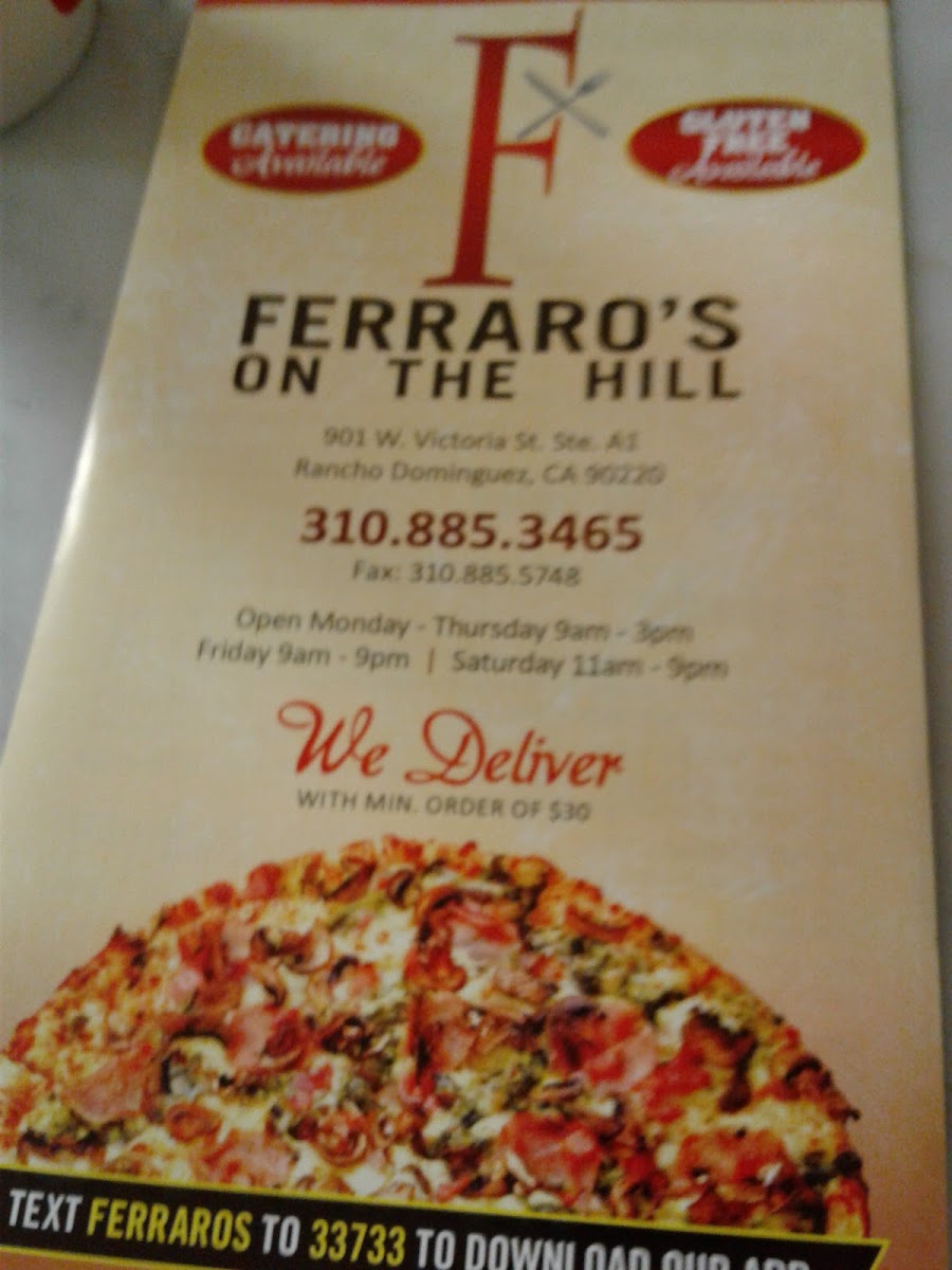 Welcome to Ferraro's On The Hill, an Italian gem nestled in Compton, CA. With its inviting ambiance and attentive staff, this restaurant offers a culinary experience that exceeds expectations. The menu showcases a delightful range of traditional Italian dishes crafted with fresh ingredients and vibrant flavors, ensuring each plate is a celebration of authentic Italian cuisine.